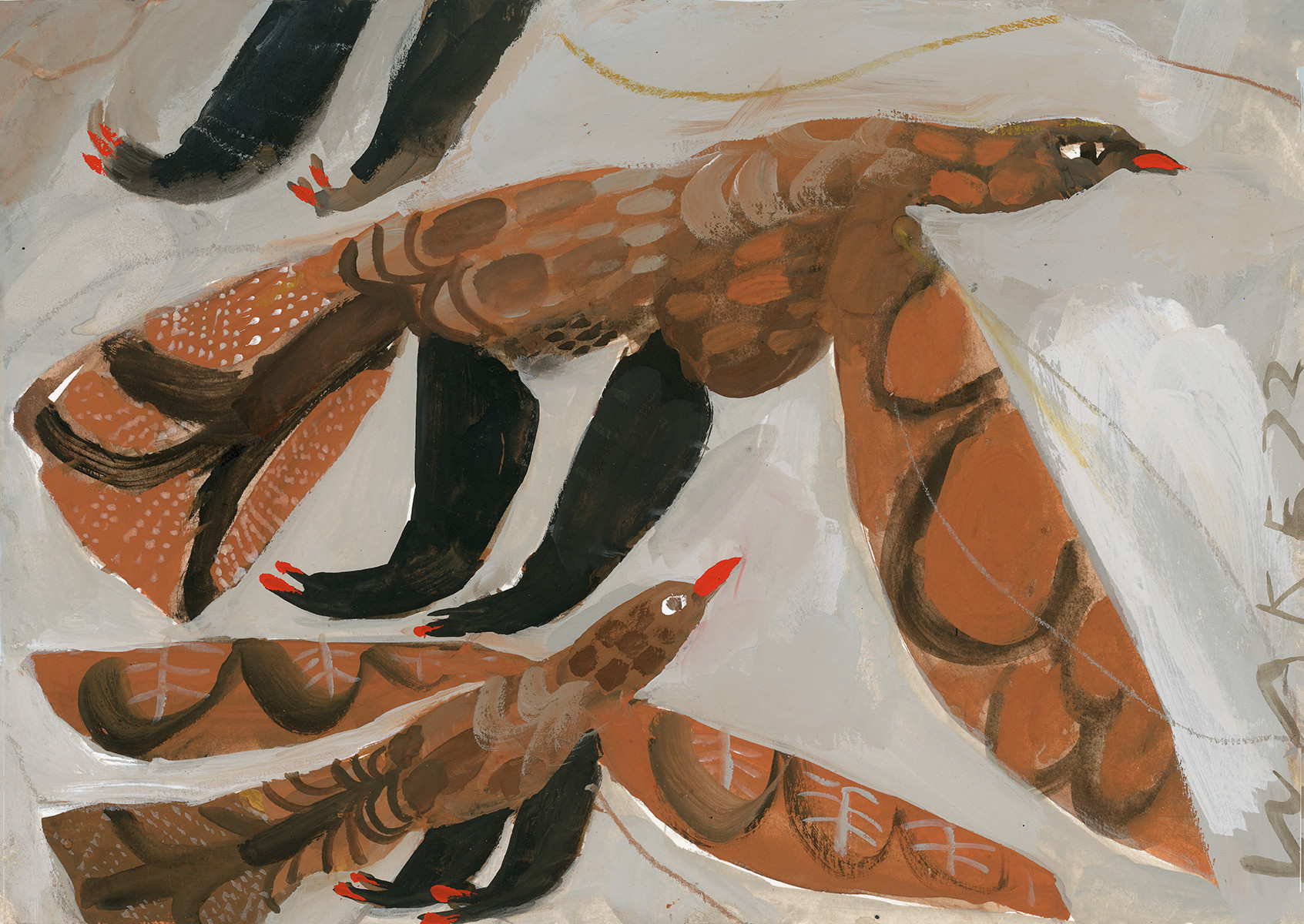 EVERYDAY BIRDS Gouache on paper /sold30 x 21cm