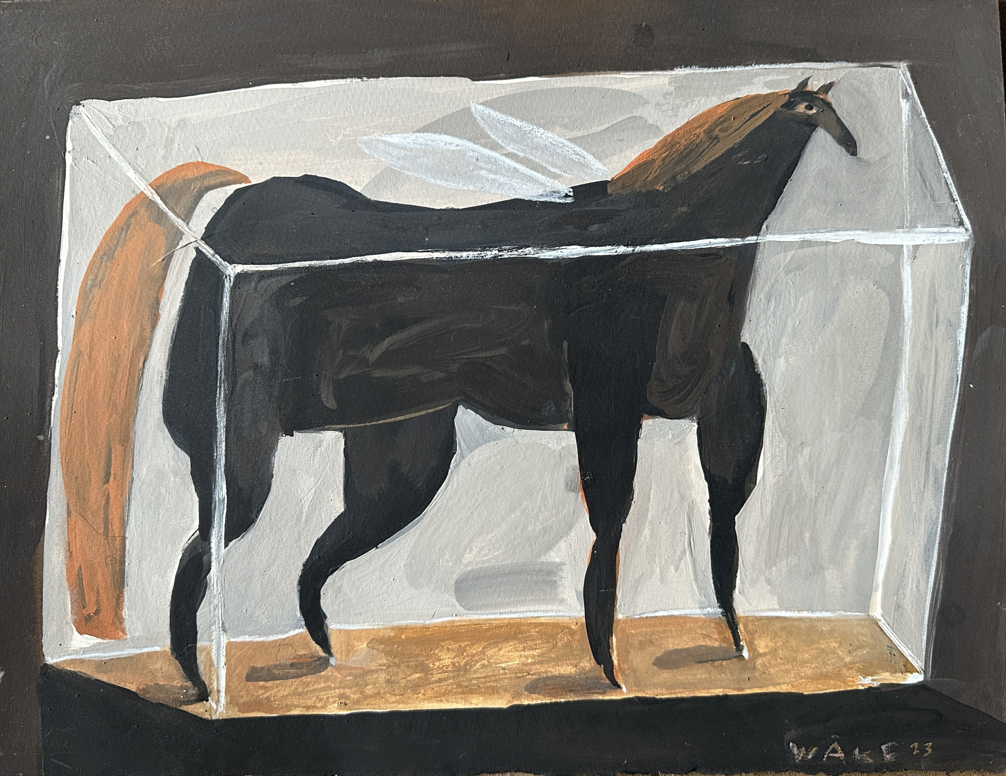 BLACK HORSE IN A BOX, with wings Gouache on paper36 x 26cm