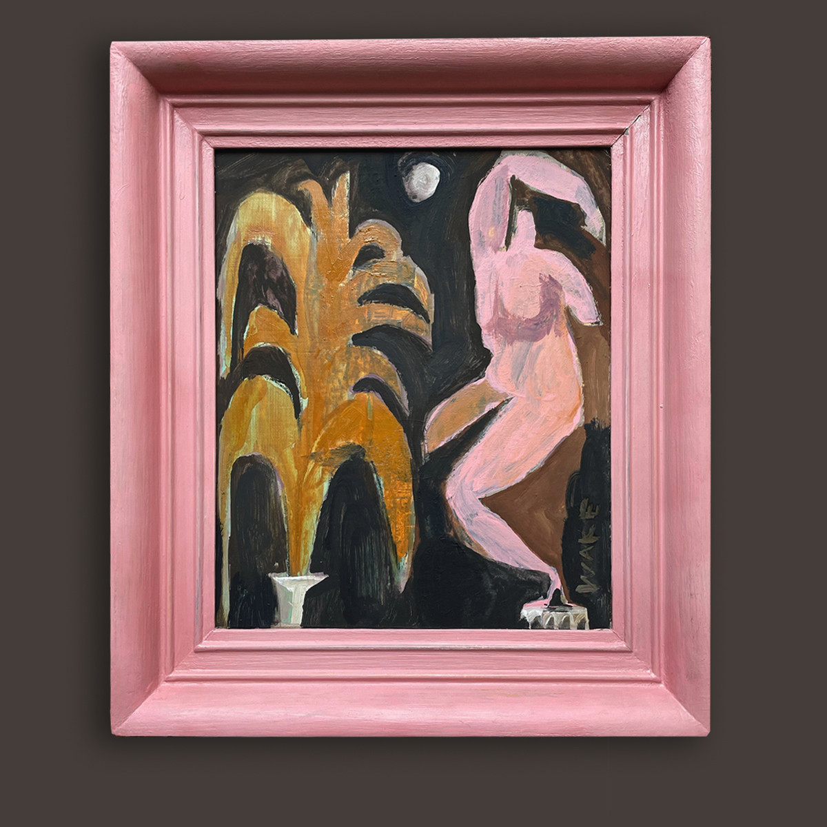 MOON BIRD Oil on board in vintage frame / sold