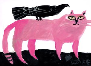 PINK CAT & PIGEONGouache on paper42 x 30cm