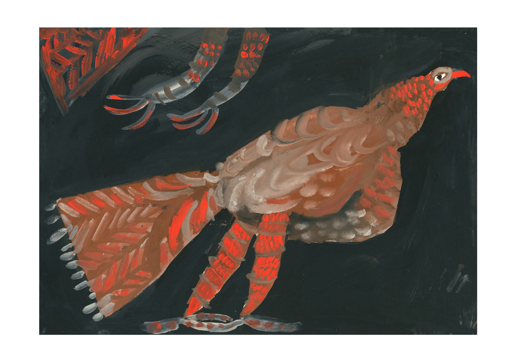 RED HEN Gouache on paper / sold30 x 21cm