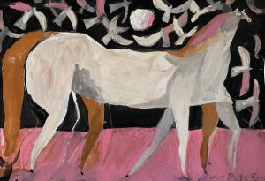 HORSE VASE With birds Gouache on paper56cm x 86cm